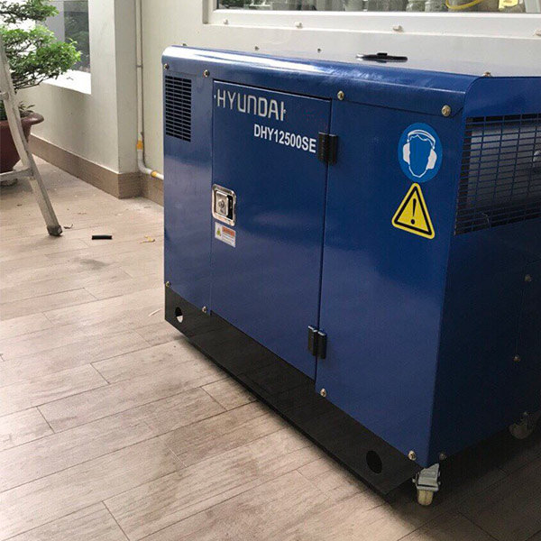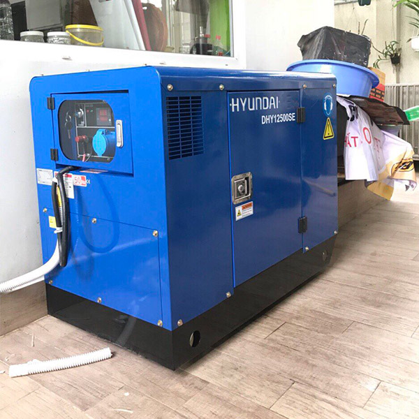 - Máy phát điện Hyundai DHY12500SE chạy dầu 10kw cách âm 1 pha có độ bền cao, không hỏng vặt.